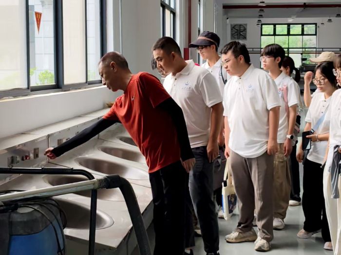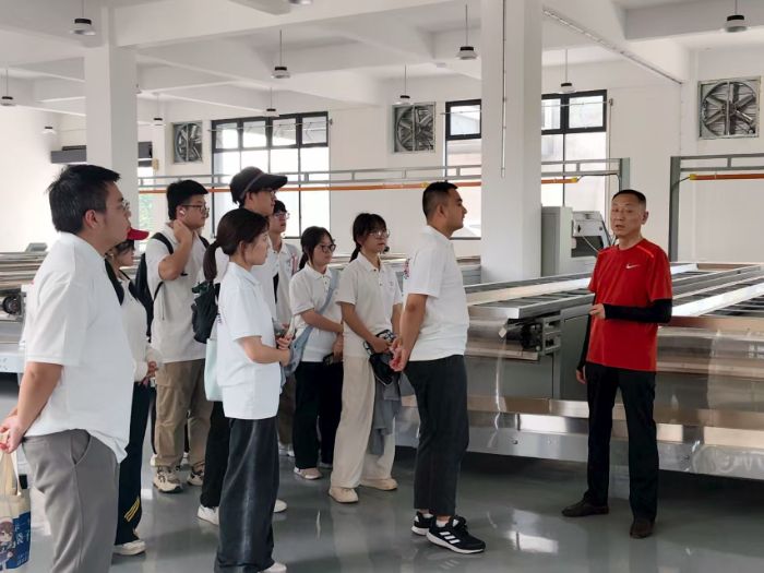 覽現(xiàn)代茶廠,探產(chǎn)業(yè)革新之徑 實(shí)踐隊(duì)首站來(lái)到雙山茶葉加工廠房,在陳洪濤的帶領(lǐng)下深入了解茶葉生產(chǎn)全流程。廠房的現(xiàn)代化儀器陣列整齊,從新鮮茶葉的殺青、揉捻到烘干、篩選,各環(huán)節(jié)均由機(jī)器精準(zhǔn)完成,只需幾名技術(shù)人員實(shí)時(shí)掌控,便可實(shí)現(xiàn)茶葉的高效生產(chǎn)。經(jīng)實(shí)地觀察與講解,實(shí)踐隊(duì)成員了解到傳統(tǒng)茶葉產(chǎn)業(yè)向現(xiàn)代化、智能化轉(zhuǎn)型的路徑,深刻體會(huì)到科技賦能對(duì)提效保質(zhì)的關(guān)鍵作用。
