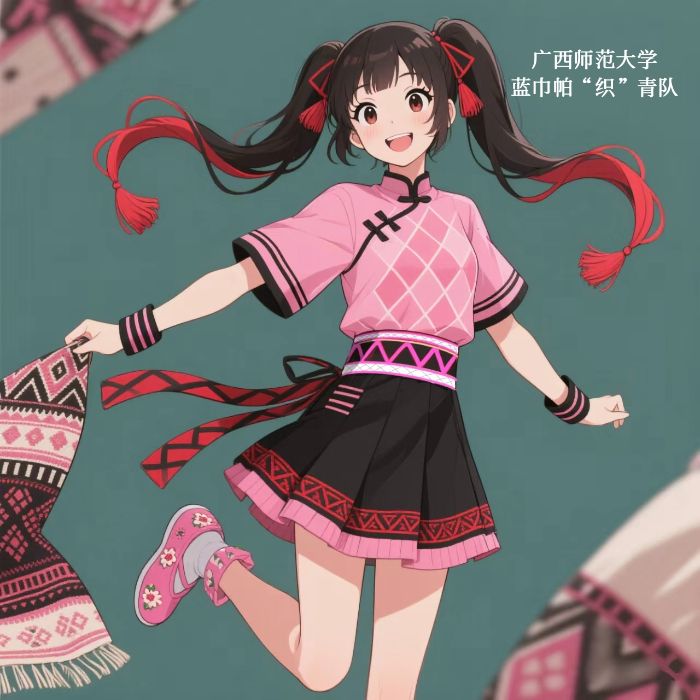 基于調(diào)研所得,團隊開始著手文創(chuàng)產(chǎn)品設(shè)計。設(shè)計團隊的核心工作圍繞著藍巾帕最具辨識度的視覺符號展開。成員們潛心研究藍巾帕的傳統(tǒng)紋樣庫,從中提煉出最具代表性的幾何圖案與色彩組合。團隊成功地將經(jīng)典紋樣創(chuàng)新應(yīng)用于實用性與藝術(shù)性兼?zhèn)涞氖痔岽⒕滦∏傻蔫匙鏈等產(chǎn)品設(shè)計稿中。此外,團隊還大膽跨界,創(chuàng)作了一組以藍巾帕編織技藝為靈感來源的動漫IP形象,賦予這項古老技藝更活潑、更易親近的現(xiàn)代表達。“我們發(fā)現(xiàn)年輕人對盲盒情有獨鐘,于是想到把小型文創(chuàng)做成盲盒系列。”設(shè)計組成員王同學(xué)解釋道,“每個盲盒里不僅有文創(chuàng)產(chǎn)品,還有一張技藝解說卡,讓消費者在開盒的驚喜中了解藍巾帕文化。”