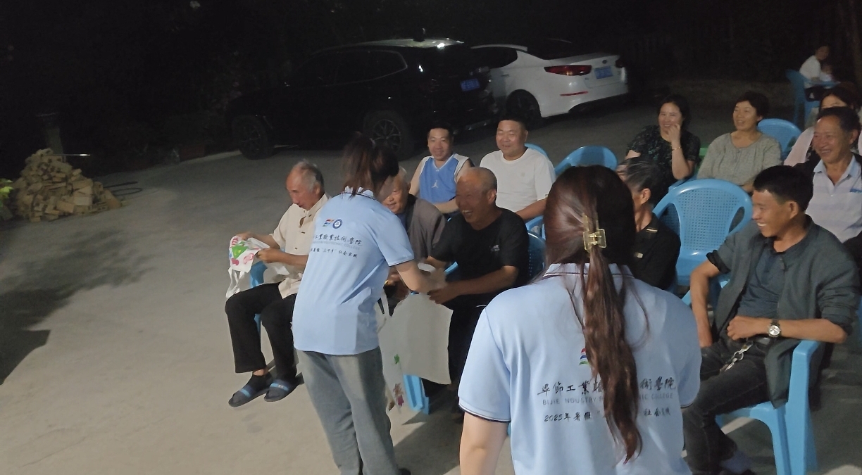 活動尾聲,實踐隊為表現優異的村民發放小禮品,獲贈村民笑容滿面;未獲贈者也干勁十足,紛紛表示“下次要更用心唱好紅歌、說好普通話”。隨后,實踐隊員與村里黨員并肩合影,青春身影與堅守鄉土的黨員相互映襯,定格下“紅色傳承、青春助農”的溫暖畫面。