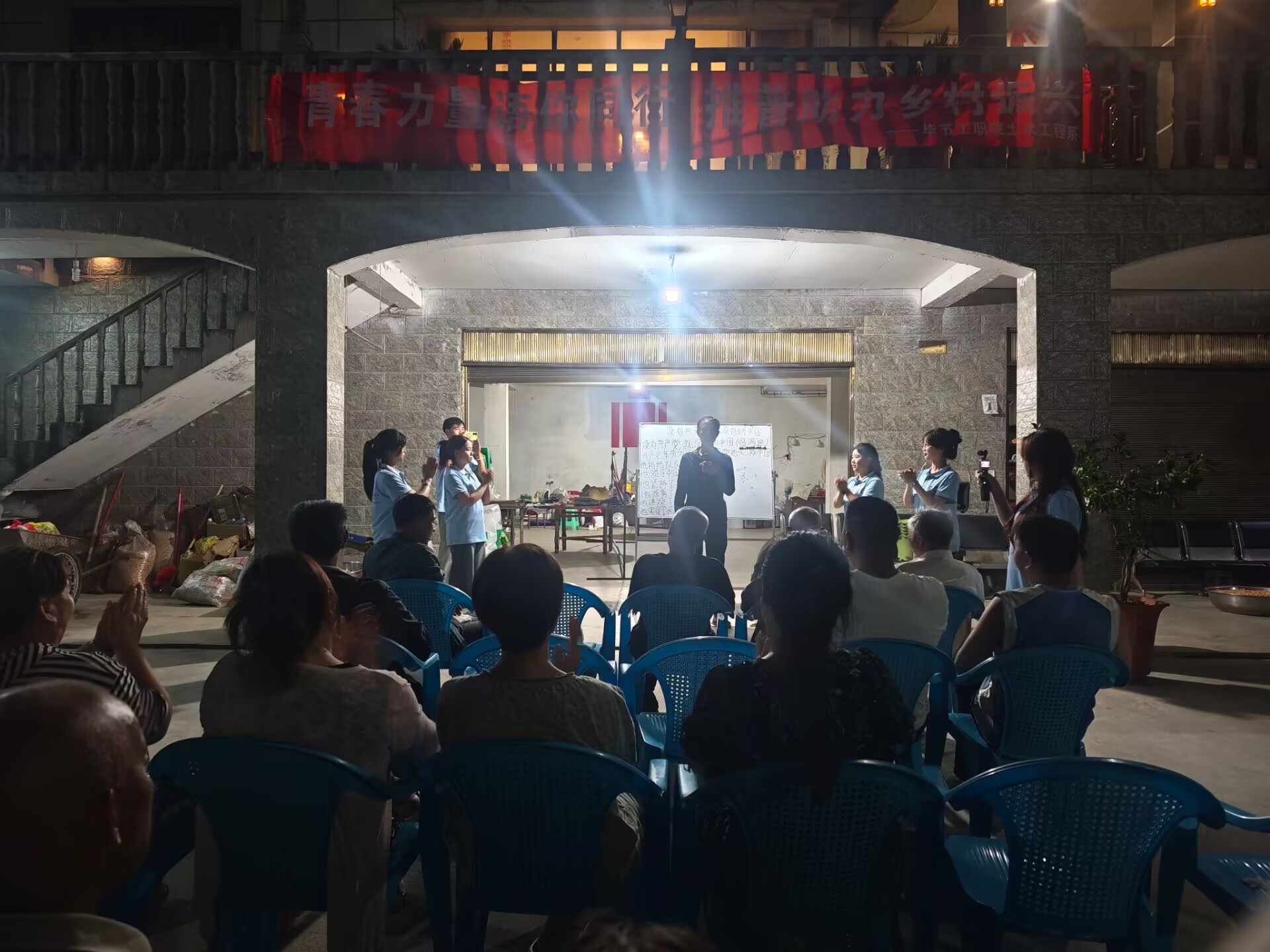 活動于夜幕中啟動。實踐隊首先通過講述黨的歷史事件,幫助村民喚醒紅色記憶;隨后進入核心環節,同步推進普通話教學與紅歌學唱——以《沒有共產黨就沒有新中國》為教學曲目,隊員用標準普通話領唱,針對“持(chí,翹舌音)”“戰(zhàn,翹舌音)”等村民易混淆的發音,逐字拆解示范,細致講解邊音、鼻音等發音規范,助力村民精準掌握。