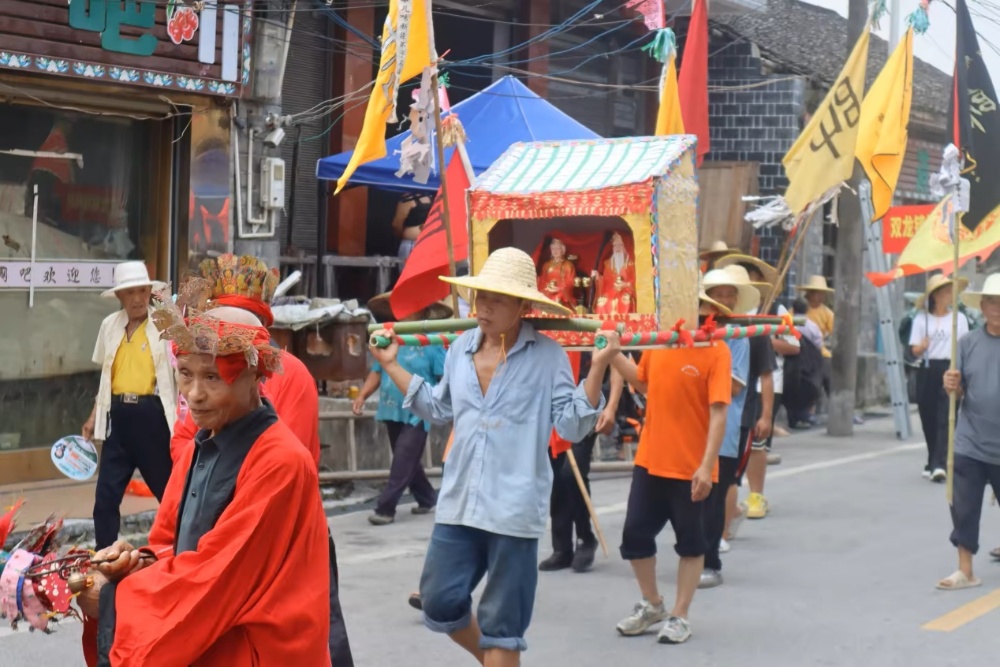 清晨,伴隨第一縷陽光灑落群山,盛大的游行隊(duì)伍正式拉開趕秋節(jié)序幕。游行隊(duì)伍前方為氣勢磅礴的武術(shù)表演團(tuán),中年表演者手持棍棒、長矛,一招一式盡顯陽剛之氣。緊隨其后的是土地公公與土地奶奶,以及莊嚴(yán)肅穆的巴代隊(duì)列。巴代師傅們手持象征神力的綹巾與司刀,行進(jìn)間跳起古老的綹巾舞,舞姿剛勁有力,衣袂翻飛中似在與天地進(jìn)行對(duì)話。隊(duì)伍末端的戰(zhàn)旗隊(duì)列陣形整齊,戰(zhàn)旗獵獵生風(fēng),為游行增添了莊重肅穆的氛圍。