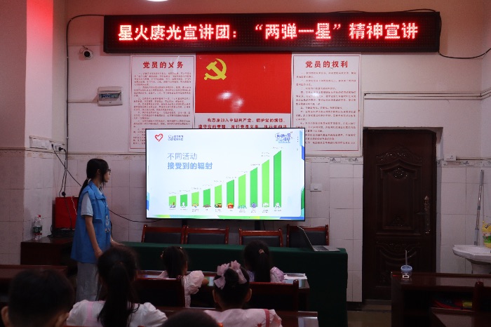 2025年7月21日,在潼南雙江社區的活動室內,一場別開生面的科普講座正在進行。重慶外語外事學院英語學院“星火賡光”宣講團成員龍欣語,為社區的同學們帶來了一場關于“生活中的核輻射”的精彩講解,將“兩彈一星”項目背后的科學知識,以通俗易懂的方式呈現給大家。
