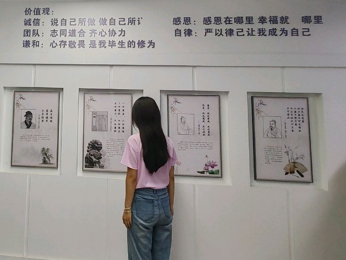 駐足歷史鏡鑒,感悟精神傳承 在“歷史鏡鑒”展區,一組展現古代官員清廉作風的圖片讓成員們久久駐足。畫面中,“清心為治本,直道是身謀”的詩句與古代清官畫像相互映襯,陽光透過窗欞灑下,在畫像上投下斑駁光影,仿佛將千年前的清廉操守帶到了眼前。“青年從不是史書里的刻板記載,而是融入骨血的操守,是穿透利益迷霧的清醒,更是代代相傳的精神火種。”成員感慨道。那些靜默的畫面,無需過多言說,已在同學們心中播下了關于如何在紛繁世間守住內心的澄明,關于怎樣以正氣堅守替代利益搖擺的種子。