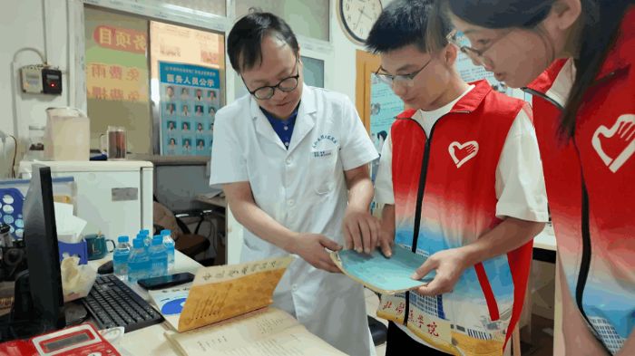 圖為艷湖社區(qū)醫(yī)院的老師為實踐隊展示醫(yī)療筆記,并講述其中的內(nèi)容。熊榮杰供圖