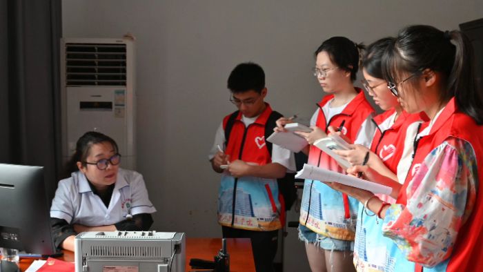 圖為車城街辦鏡譚社區(qū)衛(wèi)生服務(wù)中心的老師帶領(lǐng)實踐隊成員參觀社區(qū)醫(yī)院的基本設(shè)施。熊榮杰供圖