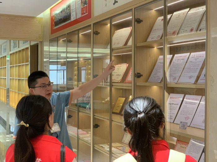 圖為二堰街辦衛(wèi)生服務(wù)中心的老師為實踐隊成員介紹社區(qū)醫(yī)院所獲獎項和社區(qū)醫(yī)院特色醫(yī)療-小兒推拿療法。羅思源供圖