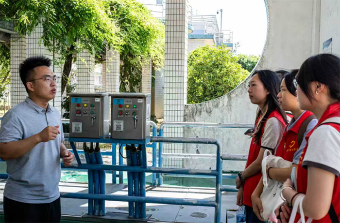 在昆山市污水處理廠的考察中,實踐團實地觀摩“污水變清流”的全流程,涵蓋進水、沉淀、生物化學處理、深度凈化及終端水質檢測等環節。工作人員系統闡釋了企業日均處理規模、生物化學凈化工藝及再生水利用方向,并重點展示了技術創新與設備升級成果。實踐團成員對處理效能與出水品質表示高度贊嘆,一致認可科學技術為環境保護體系提供了重要支撐。在座談會上,廠長談到企業已嚴格執行《長江保護法》,將水質數據定期傳輸至市環保局公開平臺,接受公眾監督。