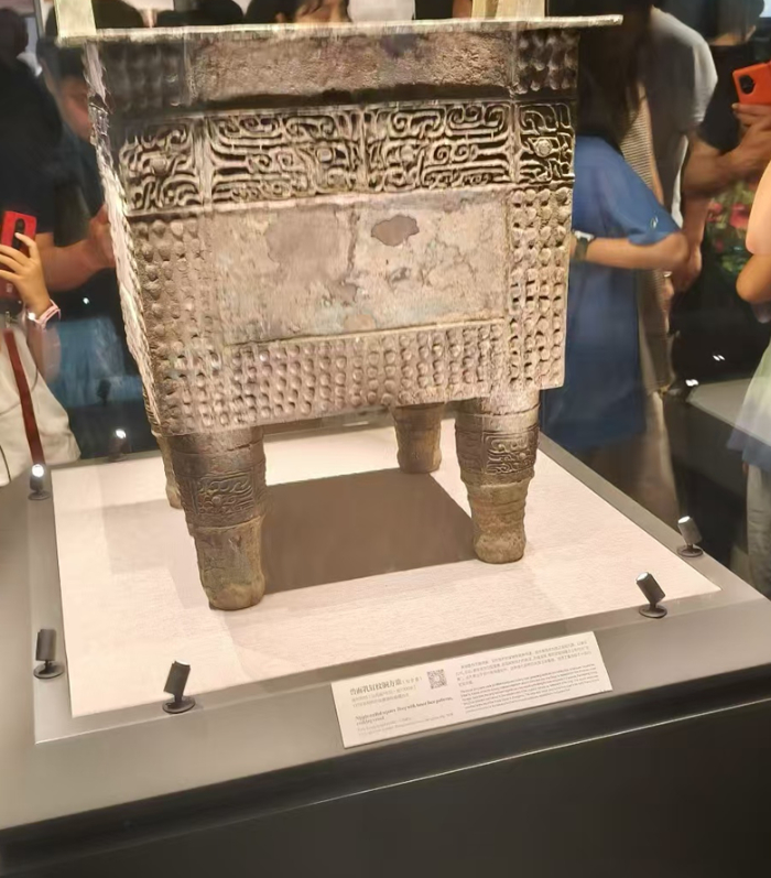 在河南博物館展廳,商代獸面紋銅罍與杜嶺方鼎等青銅器,成為團隊解碼歷史的起點。面對獸面紋銅罍,講解員用“古與今的守護”視角解讀:“三千年前,它是祭祀禮器,承載著古人對天地的敬畏;今天,這種‘敬畏之心’轉化為我們守護文化遺產、尊重自然規律的責任感,讓歷史智慧照進現實。”