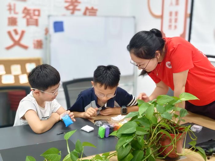 黨的二十大報(bào)告明確提出要“健全學(xué)校家庭社會(huì)協(xié)同育人機(jī)制”。“雙減”政策落地以來(lái),如何破解暑期“看護(hù)難”問(wèn)題、讓少年兒童在假期中玩得開(kāi)心、學(xué)得充實(shí),已成為社會(huì)關(guān)注的熱點(diǎn)。江蘇師范大學(xué)馬克思主義學(xué)院“彩虹糖的夏天”志愿服務(wù)隊(duì)積極響應(yīng),走進(jìn)徐州市泉山區(qū)龐莊街道,開(kāi)辦“愛(ài)心暑托甜一夏,彩虹糖里樂(lè)開(kāi)花”主題暑托班。團(tuán)隊(duì)以學(xué)業(yè)輔導(dǎo)為基礎(chǔ)、以文化傳承為內(nèi)核,將書本知識(shí)與趣味實(shí)踐相結(jié)合,為孩子們送上一段有知識(shí)、有溫度、有歡樂(lè)的“彩虹色”假期。
