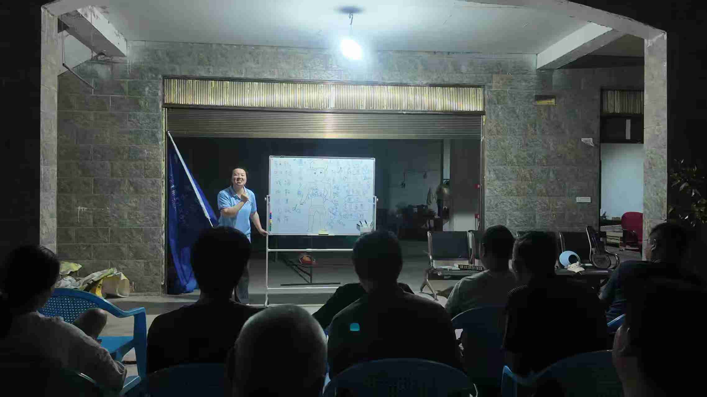 借助當地村民的人脈資源,實踐隊邀請到20左右余位村民參與普通話夜校課堂。團隊精心挑選“水井”“海子街”“咯吱窩”等與生活、地名、身體部位相關的詞語,通過“實物展示+情景模擬”教學,村民們都很積極,盡管發音略帶鄉音,卻贏得了全場掌聲。