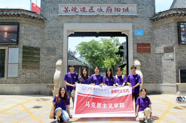 圖為實踐隊隊員在蘇皖邊區(qū)政府舊址合影留念。汪雨桐 攝