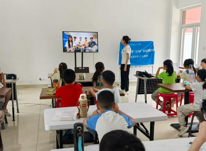 第三階段,志愿者聯動國內實踐團為淄博市張店區石村的小朋友們共上一堂課,讓小朋友們了解海外仍有許多的中國元素,增強文化認同感。