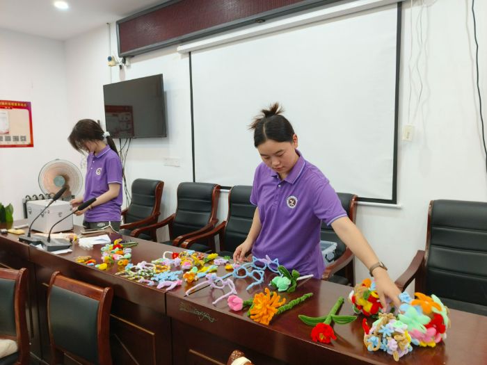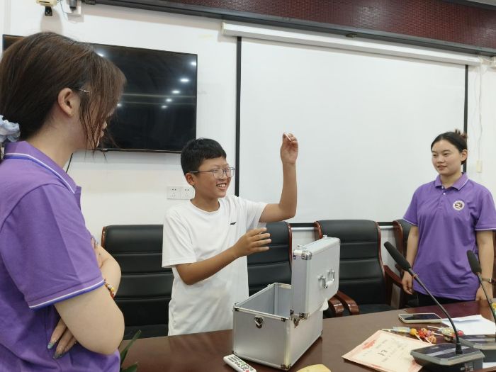 抽獎環節瞬間點燃全場熱情。從方案構思到落地執行,支教團隊全程自主操辦,力求給孩子們獨特驚喜。獎品更是別出心裁——一方面,老師們跟著網上教程,用扭扭棒親手擰出造型各異的創意小物件,藏著“敢想敢做”的期許;另一方面,備好甜蜜糖果,傳遞純粹的快樂。設置特等獎、一至三等獎,同學們有序上臺,拿到扭扭棒作品或糖果時,眼中的驚喜與笑意,讓這些飽含心意的獎品,成為夏日最動人的禮物。