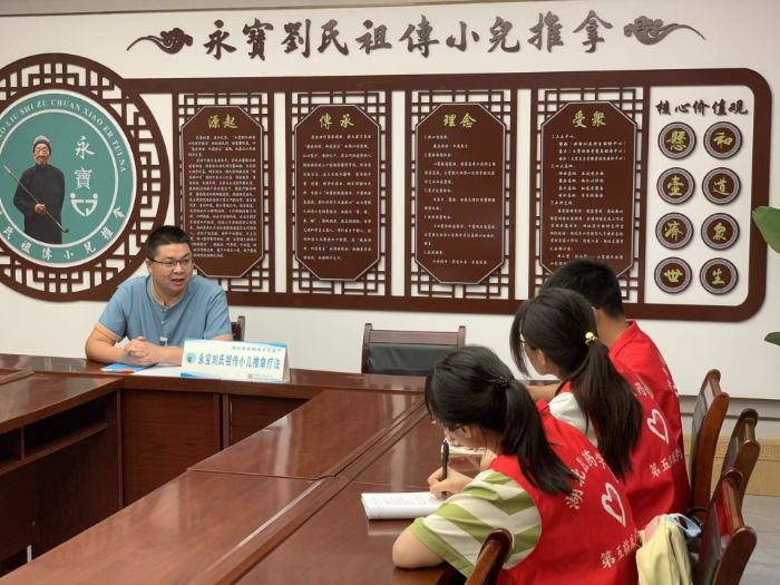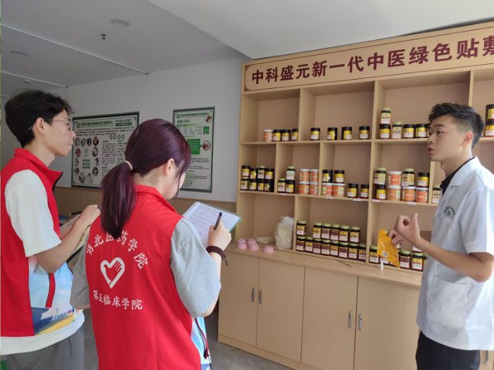 圖為社區(qū)醫(yī)院醫(yī)生帶領(lǐng)隊員們了解醫(yī)院特色敷貼。李明興 供圖