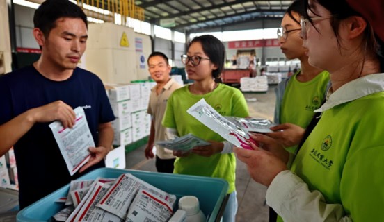 當(dāng)跟隨仝經(jīng)理走進(jìn)配藥車(chē)間,會(huì)發(fā)現(xiàn)“定制藥方”點(diǎn)燃了一份希望:針對(duì)臺(tái)風(fēng)預(yù)警,農(nóng)技師對(duì)癥下藥,在藥劑中添加了吡蟲(chóng)啉,以提前防控病蟲(chóng)害,不僅如此,農(nóng)技師們還會(huì)根據(jù)作物不同的生長(zhǎng)情況為農(nóng)戶(hù)提供專(zhuān)業(yè)性的指導(dǎo)。“這一箱剛好用于十畝地,這里是作物醫(yī)院,我們是農(nóng)田醫(yī)生。”王農(nóng)技師的話(huà),讓隊(duì)員們明白投身農(nóng)業(yè)基層服務(wù)不僅需要專(zhuān)業(yè)的知識(shí)作為技術(shù)支撐,更需要對(duì)土地的敬畏來(lái)作為核心動(dòng)力與職業(yè)初心。晚上,團(tuán)隊(duì)有幸邀請(qǐng)到中化現(xiàn)代農(nóng)業(yè)華東大區(qū)總經(jīng)理助理李駿進(jìn)行訪(fǎng)談。作為安徽農(nóng)業(yè)大學(xué)2006屆農(nóng)林經(jīng)濟(jì)管理專(zhuān)業(yè)優(yōu)秀校友,李駿與隊(duì)員們展開(kāi)親切訪(fǎng)談交流,從自身經(jīng)歷出發(fā),為大家提供了諸多寶貴的指導(dǎo)與建議,李駿校友的分享將實(shí)踐升華為職業(yè)思考:“基層需要能扛鋤頭、玩數(shù)據(jù)、懂市場(chǎng)的復(fù)合型人才。”這也是每個(gè)農(nóng)業(yè)類(lèi)大學(xué)生都應(yīng)該追求并做到的。