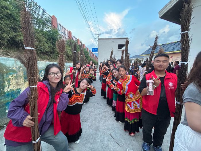 除了基礎課業和興趣培養,團隊還融入了多元主題教育。愛國主義教育、普法安全知識、暑期防溺水宣講、弘揚“兩彈一星”精神等內容,助力孩子們全面發展。活動期間恰逢彝族傳統火把節,團隊成員與社區居民、孩子們一同參與了“潑水”祈福和篝火晚會,親身體驗并融入當地民族文化。身著節日盛裝的孩子們與志愿者、社區老師共同留下了珍貴的合影。