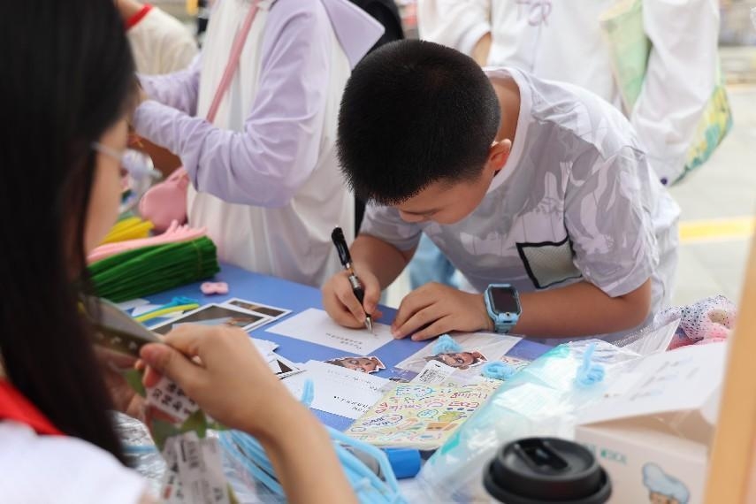 在志愿者的引導下,孩子們還用稚嫩的筆觸在明信片上寫下了“早日康復”“每天開心”等溫暖的話語。這些卡片將承載著最真摯的祝福,為正在與病痛作斗爭的住院患兒們送去同齡人的鼓勵。孩子們親手按下的五彩手印更是匯聚成一股無形的力量,推動著“花開各季,童心同行”團隊不斷前行。
