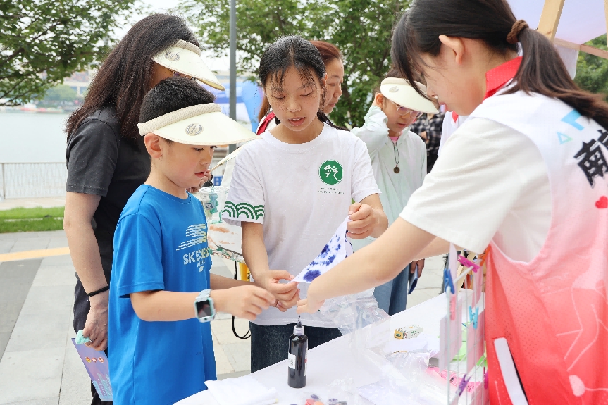 2025年5月31日,該團隊在“愛心筑夢・青益南京”2025夏季公益嘉年華暨大學生社團優秀志愿服務項目展示活動中,開展了扭扭棒手作、手工扎染、知識問答、明信片寄語、五彩手印等生動有趣的活動。