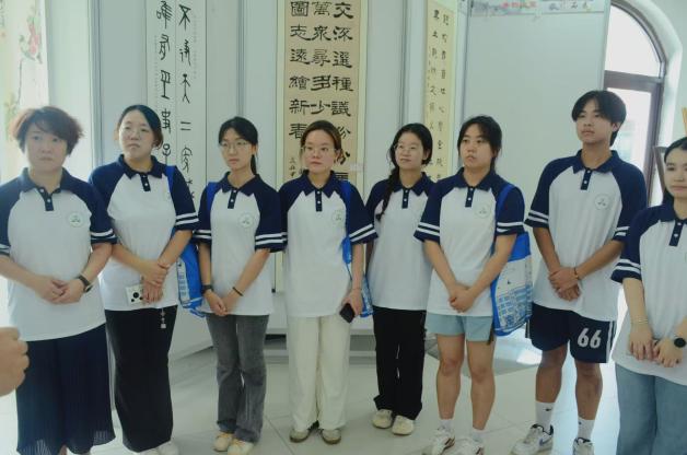 7月19日上午,“邊城靈韻”蘿北文化實(shí)踐調(diào)研團(tuán)首先探訪了中俄書法繪畫展和油畫展。當(dāng)書畫走出展廳,與周邊的綠水青山相映成趣,這條書畫展長(zhǎng)廊瞬間化身為一間別具一格的“移動(dòng)教室”。東北林業(yè)大學(xué)馬克思主義學(xué)院教師周漢杰以實(shí)踐為講臺(tái)、以山水為課本,為團(tuán)隊(duì)成員講授了一堂“有風(fēng)、有墨、有信仰”的行走思政課。