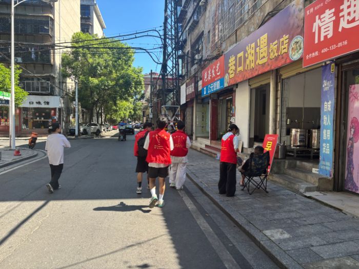 安全與關懷并重:采用發傳單的方式,選取近年本地真實溺水事件,以流程圖解還原事故原因,警示“野泳”“結伴戲水”等高風險行為,將溺水事件變成一個個故事安全是活動的首要前提。整合國家防溺水“六不準”與地方“四不要”要求,形成通俗口訣。我們在蒸湘區蒸湘街道委員會的幫助下在蒸湘區聯合街道辦事處及周邊社區不斷來回走動,為路過的家長發送一份份暖心的傳單。