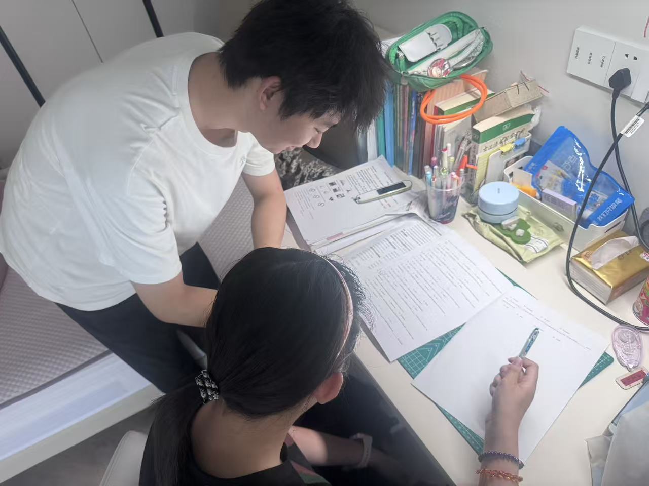 圖為小隊(duì)成員何梅煊陪伴孩子完成暑假作業(yè) 何梅煊供圖