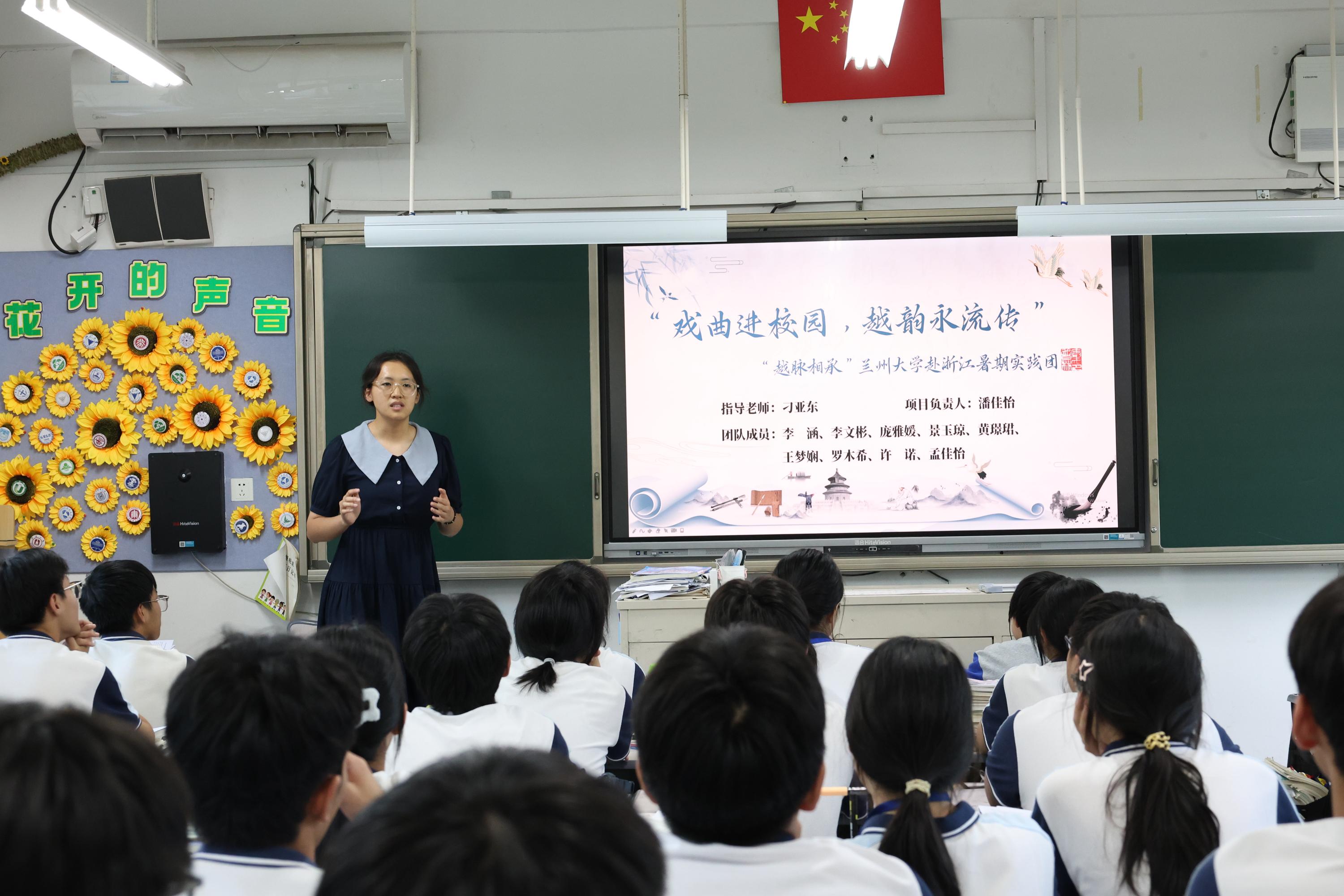 圖為團(tuán)隊(duì)負(fù)責(zé)人潘佳怡在嵊州市高級(jí)中學(xué)進(jìn)行越劇宣講。李文彬 供圖