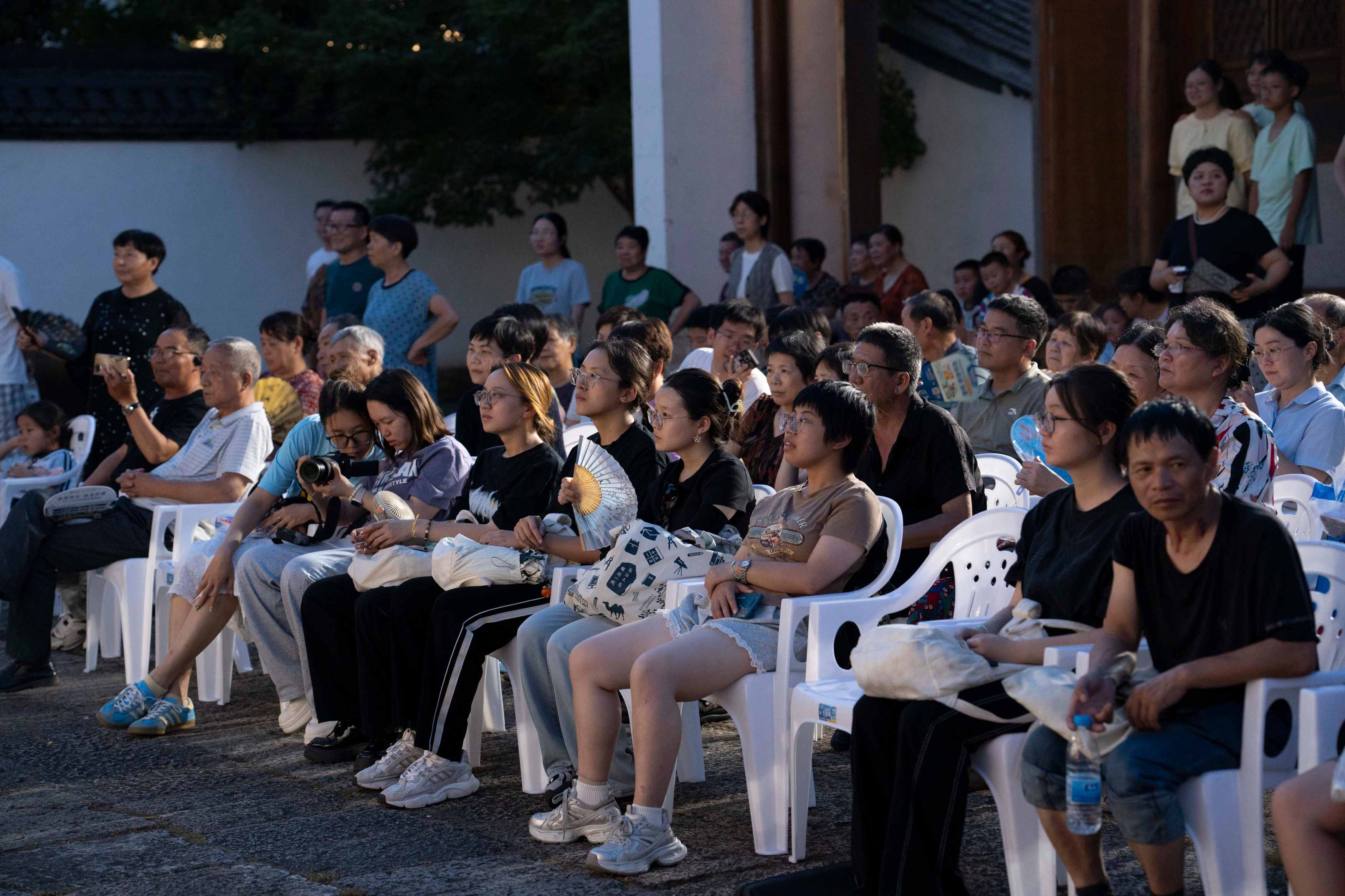 圖為團(tuán)隊(duì)成員在吳素英老師邀請(qǐng)下觀看其越劇工作室演出。王夢(mèng)嫻 供圖