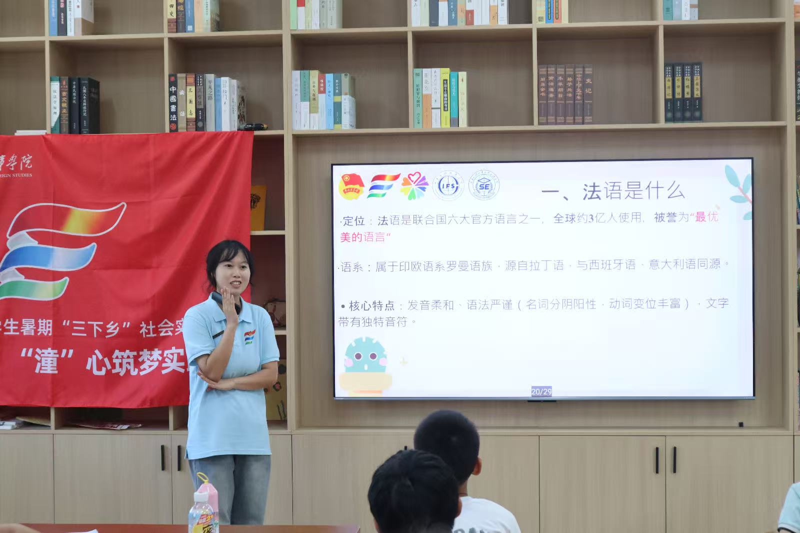 圖為實踐團成員講授法語的相關內容。 程坪 供圖