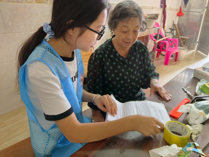 在村子另一頭,高一學生小韋與父親相依為命。母親早逝,祖母常年生病吃藥,全家僅靠父親打零工維持生計,“讀到高中就夠”成為這位父親的無奈口頭禪。宣講團以“義務教育有保障、高中助學全覆蓋、大學貸款無負擔”三張明白紙逐條對照,用方言講透“學費不用愁、生活有補助、就醫有兜底”的政策鏈條,并協調村委為其辦理低保提檔。臨別時,祖母握住志愿者的手反復念叨:“娃的學費終于有著落了,家里再苦也要讓他把書讀下去。”