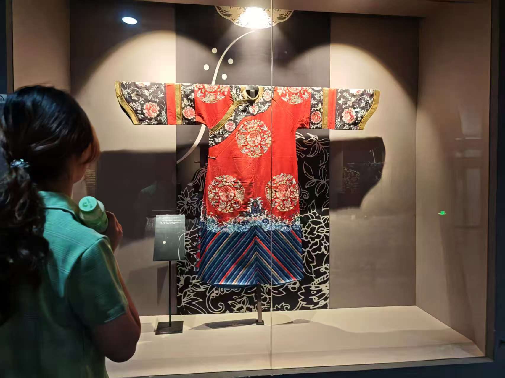 "第一次看到清代龍袍實物時,我們整個團隊都屏住了呼吸。"團隊隊長、新聞與文化傳播院大一學生鄭佳怡回憶道,"在博物館《云錦天衣》展廳,一件朱紅色緞繡彩云金龍朝服讓我們久久駐足。金線在燈光下流轉著穿越時空的光芒,工作人員告訴我們,這樣一件龍袍需要兩個織工晝夜不停地織造兩年多時間。"