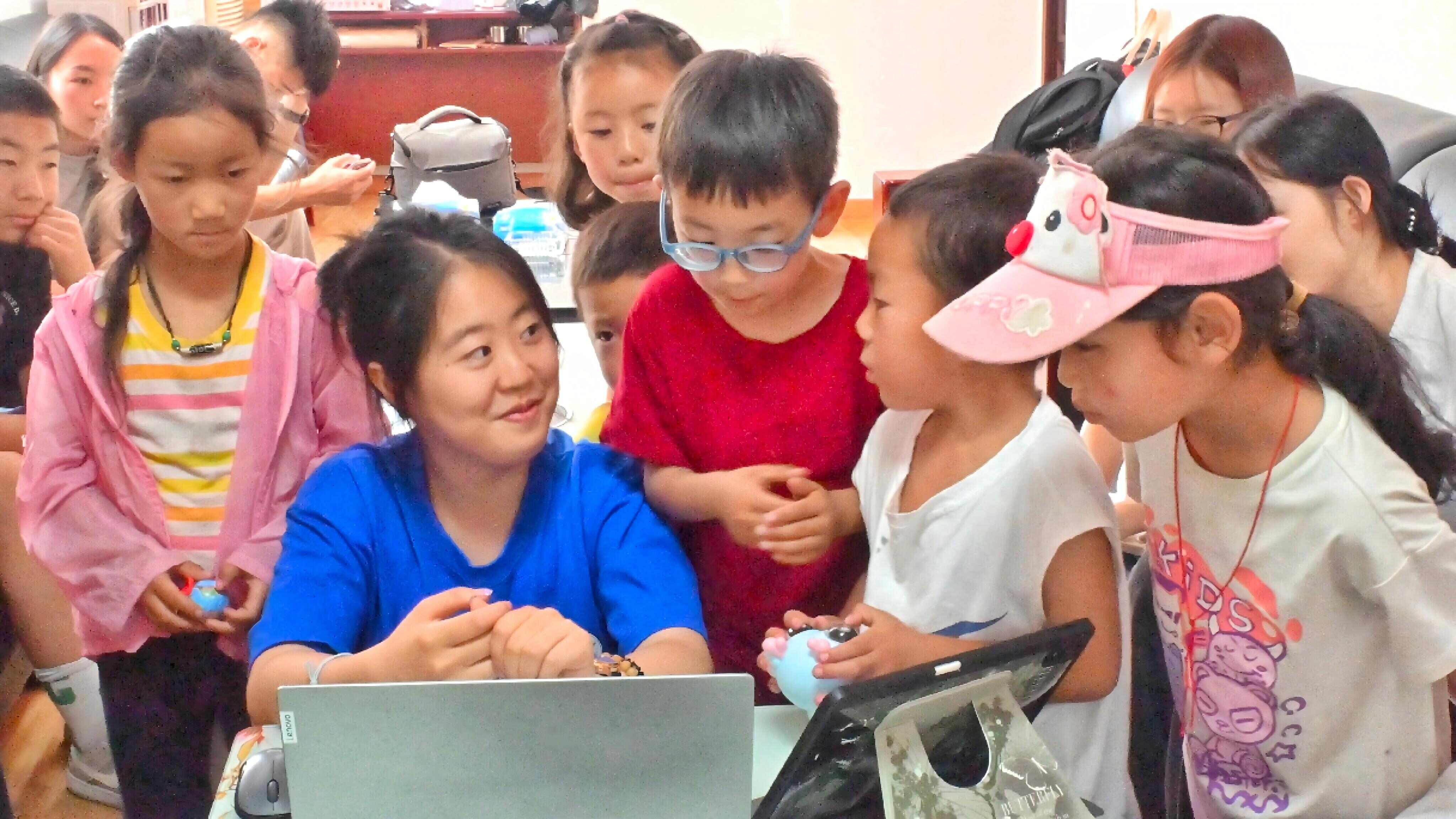 (圖片說明:團隊成員桂茳涵為草登鄉藏族兒童講解地質災害識別與避險知識。朱宇翔攝)