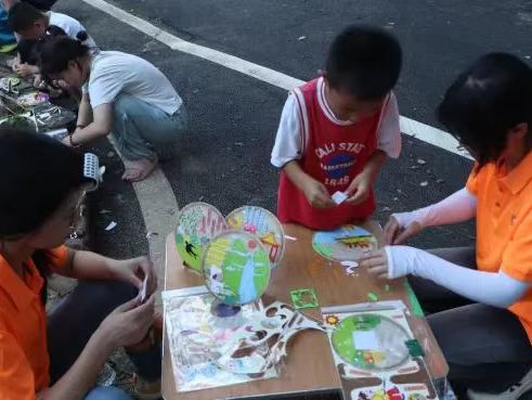 隨著活動的深入,團隊又為孩子們帶來了一場寓教于樂的盛會——“漢字游園會”。當識字辨形化作趣味挑戰,當詩詞書畫融入闖關妙想,漢字文化在童聲笑語里薪火相傳。活動精心打造六大趣味互動關卡,引領參與者穿梭于漢字藝術的奇妙世界。在“甲骨文翻翻樂”環節,身著黎族傳統服飾的志愿者借助精心設計的甲骨文卡片,引導孩子們細致觀察“草”“花”“谷”等字符的古老象形特征,孩子們踴躍辨識字義,現場氣氛熱烈。“童心繪傘趣”環節,孩子們在素白紙傘上精心創作,將純真爛漫的想象與典雅含蓄的傳統美學完美融合。“詩貼畫中韻”環節則巧妙融合了詩詞意境與手工創作,志愿者帶領孩子們運用詩句貼畫創作作品,讓孩子們對詩詞背后蘊含的深刻內涵有了更為真切的領悟。