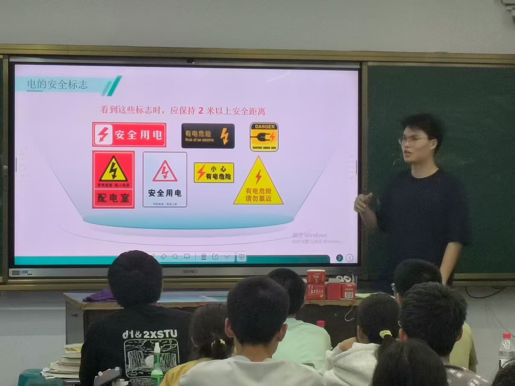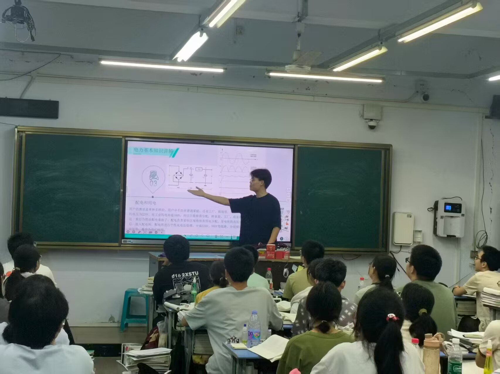 活動伊始,陳飛洋以夏季安全用電知識為切入點,結合生活實例生動講解了電器使用規范、電路故障排查等實用內容。"空調長時間運轉要注意通風""發現電線老化要及時更換"等實用建議讓同學們頻頻點頭。講解過程中,同學們神情專注,不時記錄要點,展現出濃厚的學習興趣。