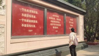 圖|成員余雨純仰讀習近平英雄箴言 張林碩攝