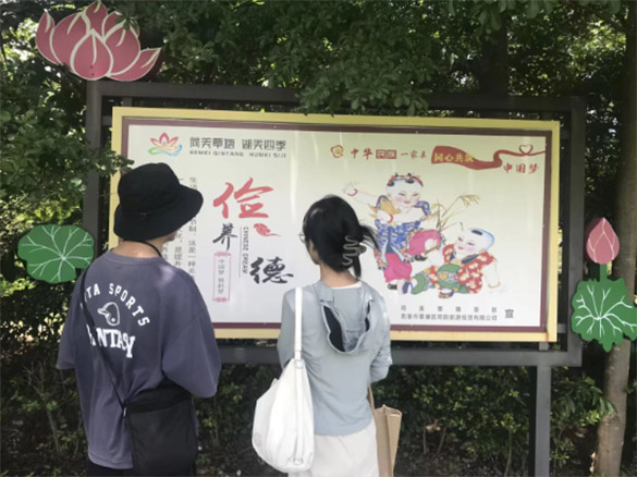 除了觀賞荷花,景區(qū)內(nèi)幾乎沒有能讓游客深度參與的互動項(xiàng)目。“要是能讓游客親手采一次蓮,或者體驗(yàn)做荷花茶,是不是就能留得更久?”團(tuán)隊(duì)成員一邊觀察游客動線,一邊交流想法。隨后,團(tuán)隊(duì)與龍鳳村村委圍繞景區(qū)發(fā)展展開座談,大家結(jié)合調(diào)研中的發(fā)現(xiàn)提出建議:可以在景區(qū)增設(shè)蓮藕主題體驗(yàn)區(qū),把醉蓮閣的廉潔文化與蓮藕“出淤泥而不染”的特質(zhì)結(jié)合,開發(fā)些小文創(chuàng);再在景區(qū)周邊設(shè)個特色農(nóng)產(chǎn)品售賣點(diǎn),讓游客看完荷花還能帶走蓮藕相關(guān)產(chǎn)品。
