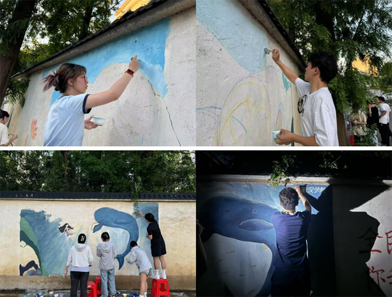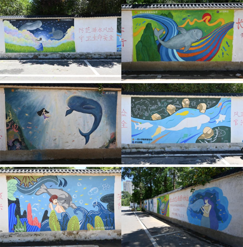 作為長期深耕長江生態保護的青春力量,該志愿服務隊在過去兩年間足跡遍布贛鄂兩地,先后在7個村莊、2個社區及1所學校完成35面生態繪畫創作,以實際行動為長江江豚保護事業注入活力。