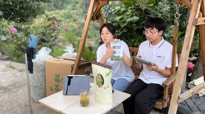 圖為青島大學(xué)外語(yǔ)學(xué)院“湘西莓茶香,青春助農(nóng)興”社會(huì)實(shí)踐團(tuán)成員進(jìn)行直播帶貨