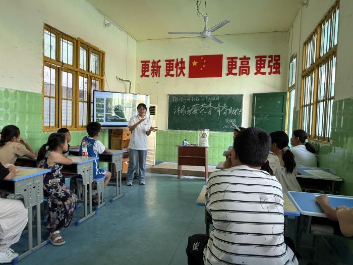 圖為青島大學(xué)外語(yǔ)學(xué)院“湘西莓茶香,青春助農(nóng)興”社會(huì)實(shí)踐團(tuán)成員開(kāi)展支教活動(dòng)