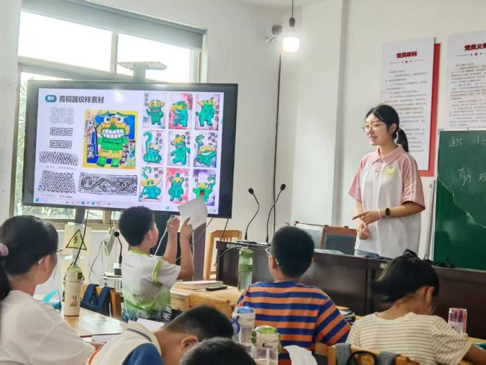 這并非簡單的技藝傳承,而是一場跨越千年的生命對話。實踐隊隊員精心設計教學內容,將深厚的歷史文化知識轉化為適合兒童認知的體驗活動。孩子們通過親手模擬制作甲骨、觀察青銅紋飾、學習節氣知識、練習五禽戲等環節,在動手實踐與親身體驗中,增進了對中華優秀傳統文化內涵的理解。