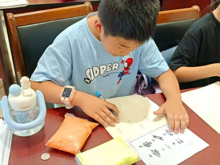 “觀乎天文,以察時變;觀乎人文,以化成天下。”稚嫩的手指揉捏著黏土,清澈的眼眸凝視三千年前的神秘刻痕,歷史的長河在孩子們的指尖悄然流淌。在“泥土里的漢字精靈”這堂課上,實踐隊隊員帶領著孩子們溯漢字之源,探文脈之根,觸摸中華文明最古老、最鮮活的心跳。