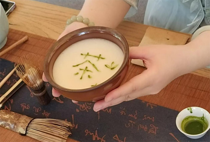 青年行動:讓傳統技藝“活”在當下 談及傳承初心,槐序老師動情回憶外曾祖父“吃茶”的場景:“茶葉碾成粉末,再用工具擊打出沫浡,一飲而盡,這種儀式藏著中國人對生活的認真。”她鼓勵學生以創新思維延續文脈:“傳承未必身著漢服仿古制,閑時為自己點一盞茶,便是對文化的致敬。”實踐隊隊長王同學感慨:“茶籠輕擊的瞬間,茶湯泛起云乳般的沫浡,讓人真切體會到‘慢下來’的力量。我們將探索點茶與現代茶飲的融合路徑,讓非遺真正走進青年生活。”