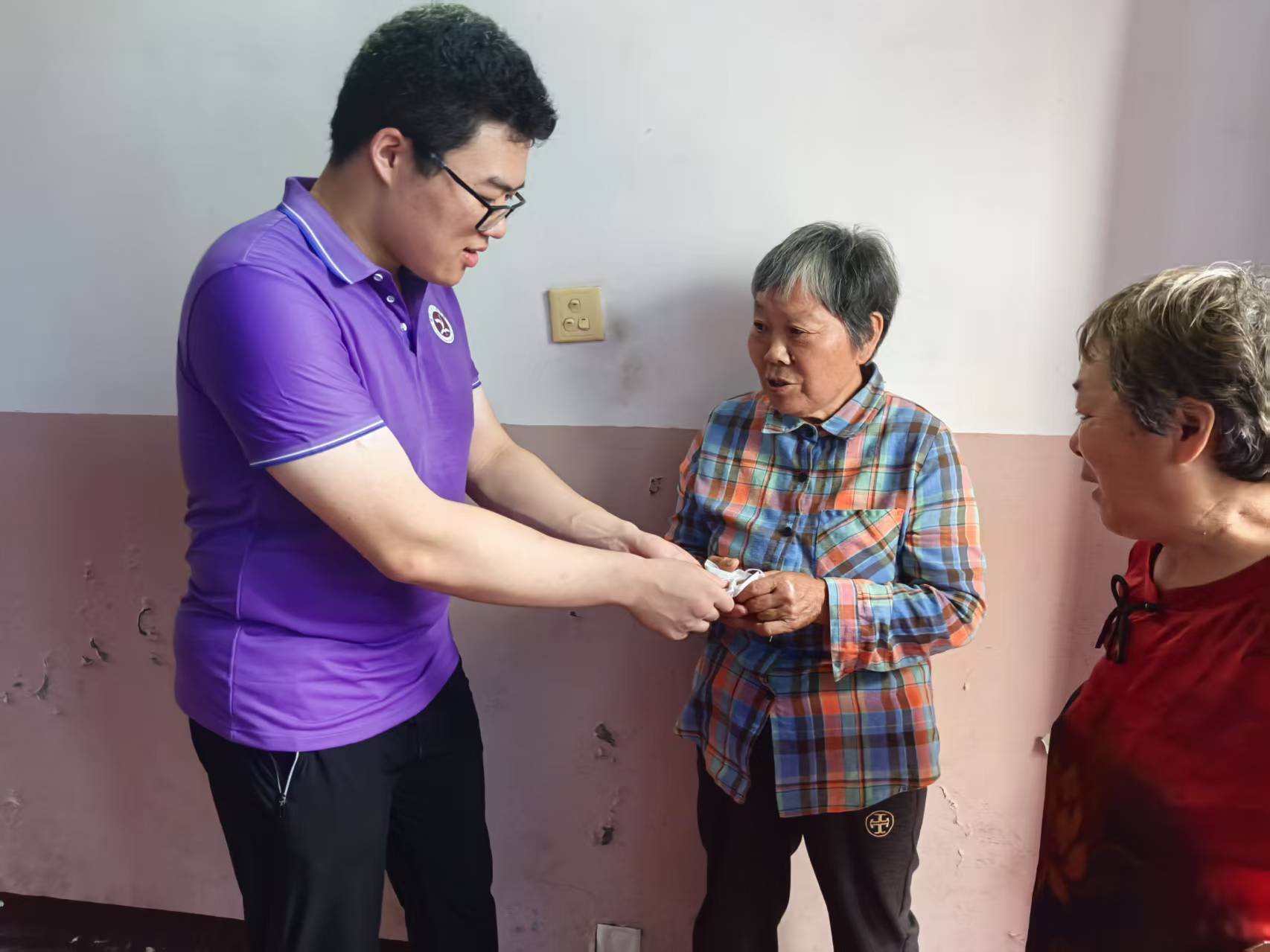 | (圖為7月15日,“銀齡筑夢臻關愛,杏林護煦煥晴暉”團隊成員高瑞浦將香囊贈予建華村的李奶奶。高瑞浦供圖) |