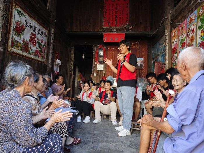 (圖為實踐團成員與村民合唱 陸遠莉攝)