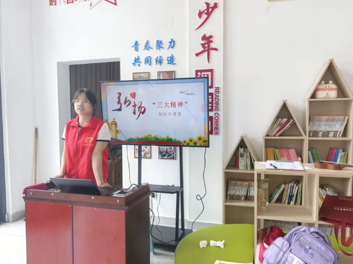 圖為志愿者和社區(qū)兒童共同探討“三大精神”。袁芳琦 攝