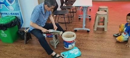 活動現場,一位熱心的老爺爺支起磨刀攤位,免費為居民打磨剪刀、菜刀。只見他手持砂輪,手法嫻熟地打磨刀刃,時而俯身仔細查看刃口,時而調整角度精細拋光,原本鈍澀的刀具經過一番打磨,瞬間變得鋒利如新。