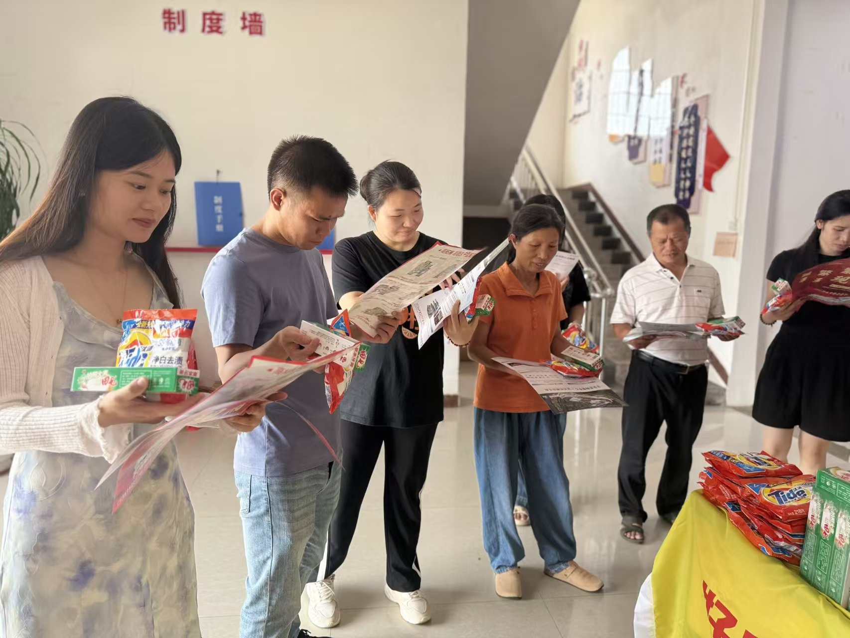 圖為村民閱讀宣傳資料。 韋麗英 供圖