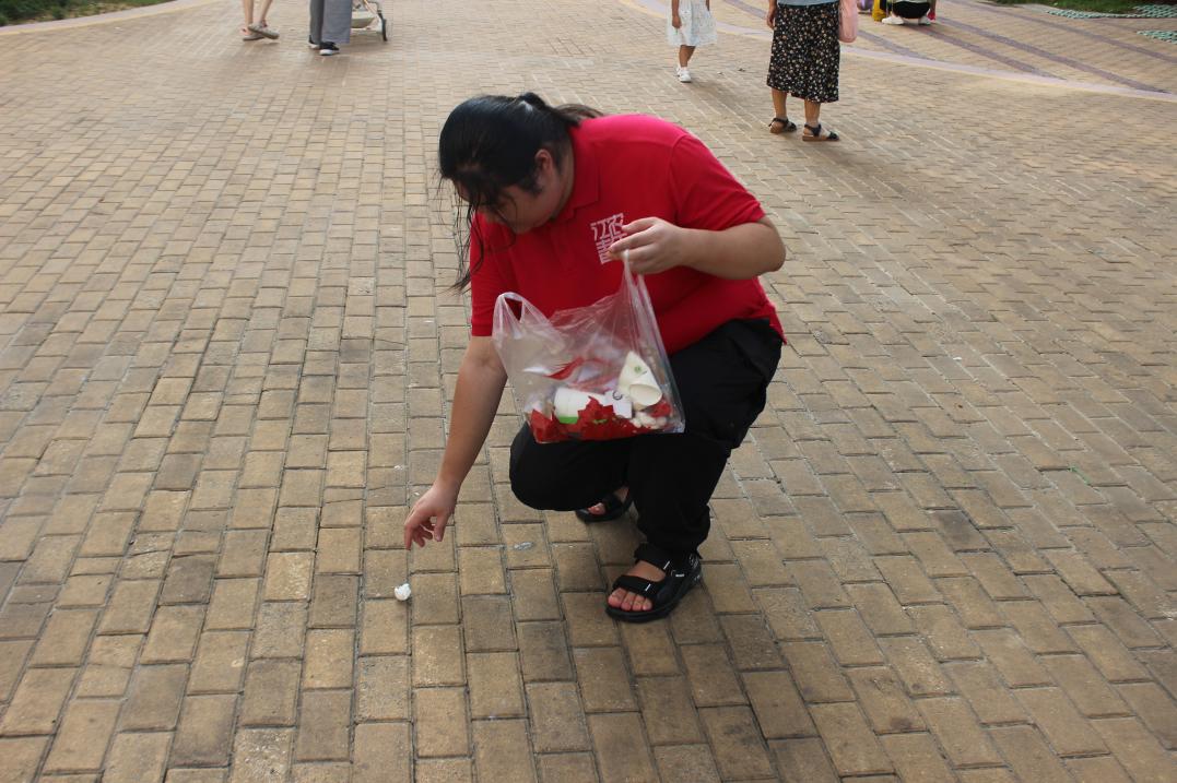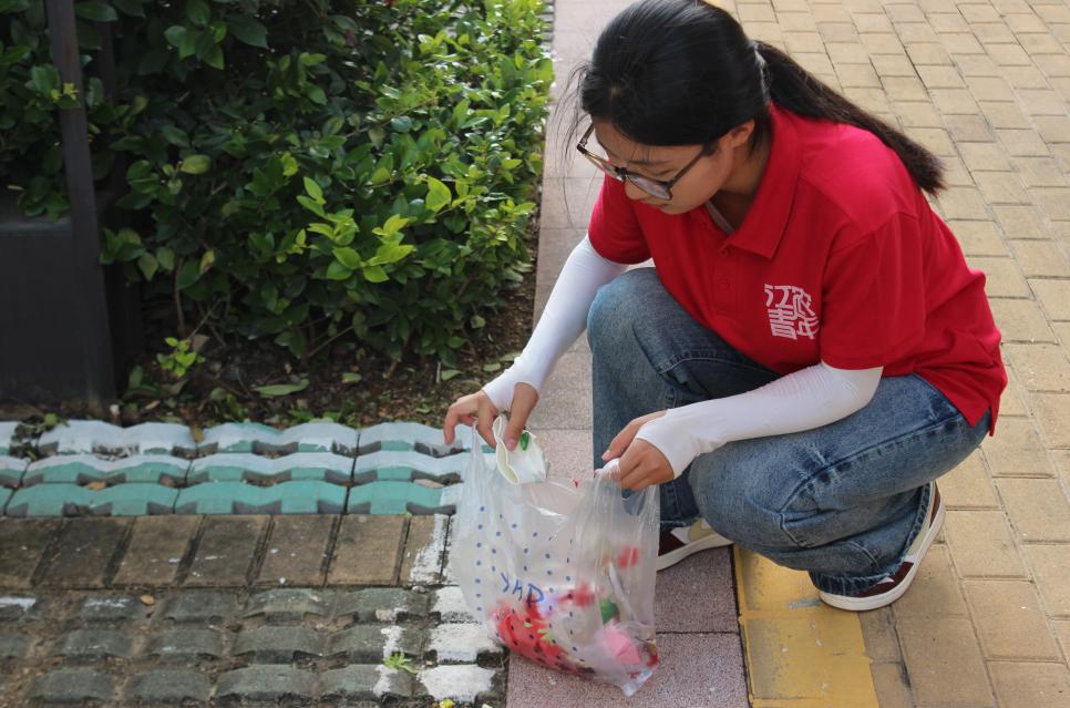 躬身踐行,凈化社區環境;青春擔當,共筑美麗家園。實踐隊全體成員積極響應“綠色社區”號召,深入榮景社區開展環境衛生整治行動。隊員們身著統一志愿服裝,對社區內的綠化帶、休閑廣場、樓道角落、停車區等公共區域進行了徹底清理。行動中,隊員們不放過任何一個衛生死角,細心撿拾草叢中的煙頭、紙屑、塑料瓶,清理積存垃圾,并將散亂停放的電動車輛逐一歸位,整齊擺放到指定區域。以實際行動美化家園,傳遞“共建共享”的文明理念。