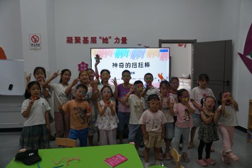 孩子們圍在實驗臺前爭相嘗試,“為什么水會變成泡泡?”“小魚怎么自己動了?”等疑問此起彼伏,志愿者逐一解答,引導他們觀察現(xiàn)象、思考原理。