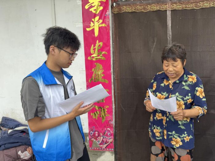 圖為實(shí)踐團(tuán)成員為同力村的村民進(jìn)行AI反詐宣傳。姜雨欣 供圖