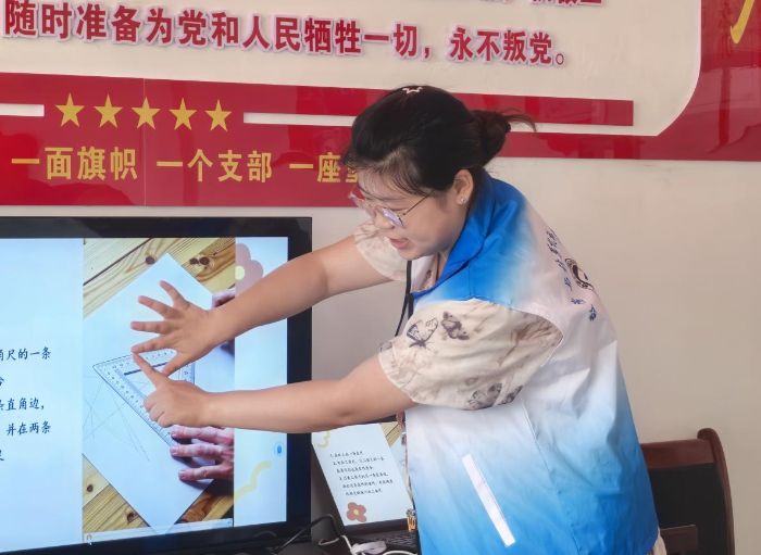 圖為實(shí)踐團(tuán)成員柏佳蕊為學(xué)生講解AI生成的視頻。李雨琪 供圖